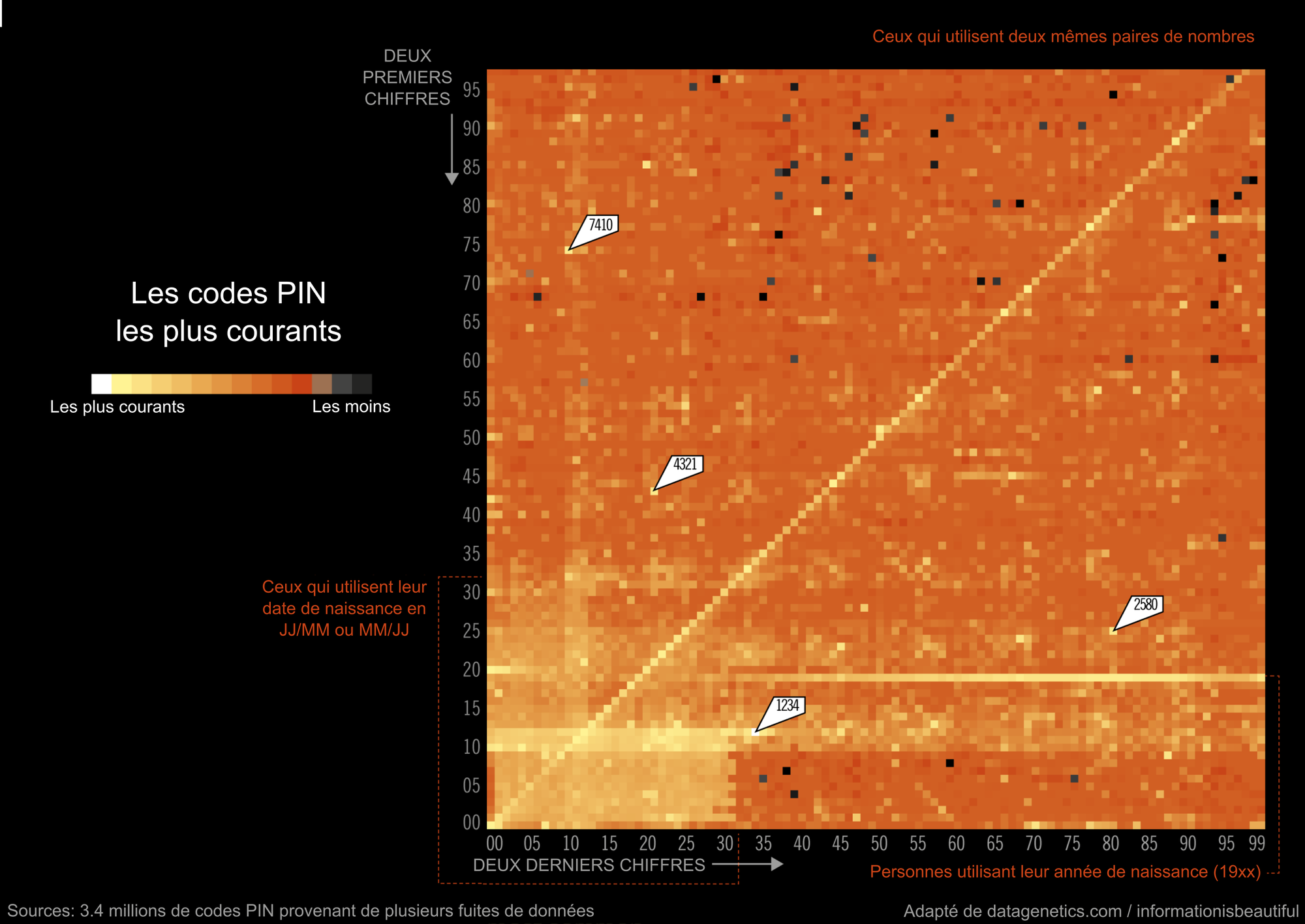 Ce joli graphique représente les combinaisons possibles de codes PIN de quatre chiffres, ainsi que la fréquence d'utilisation de ces codes.